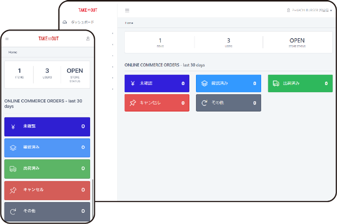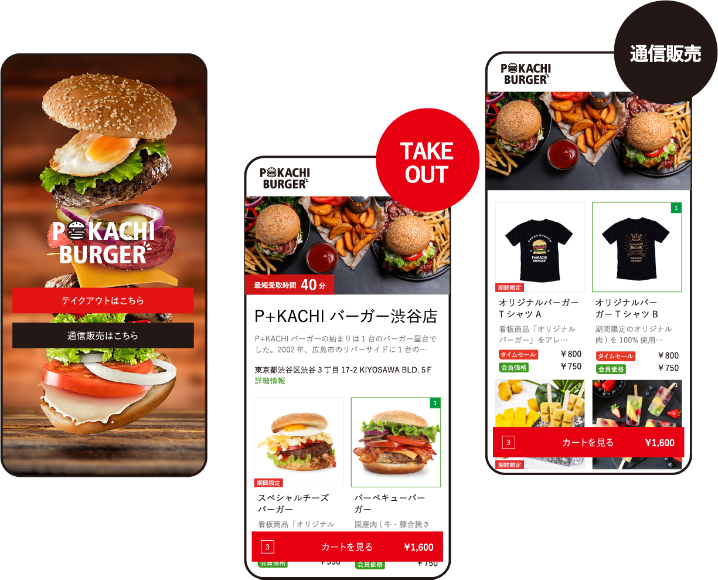 ピーカチテイクアウトもご契約いただくと、テイクアウトと通販のTOPページが作成されます